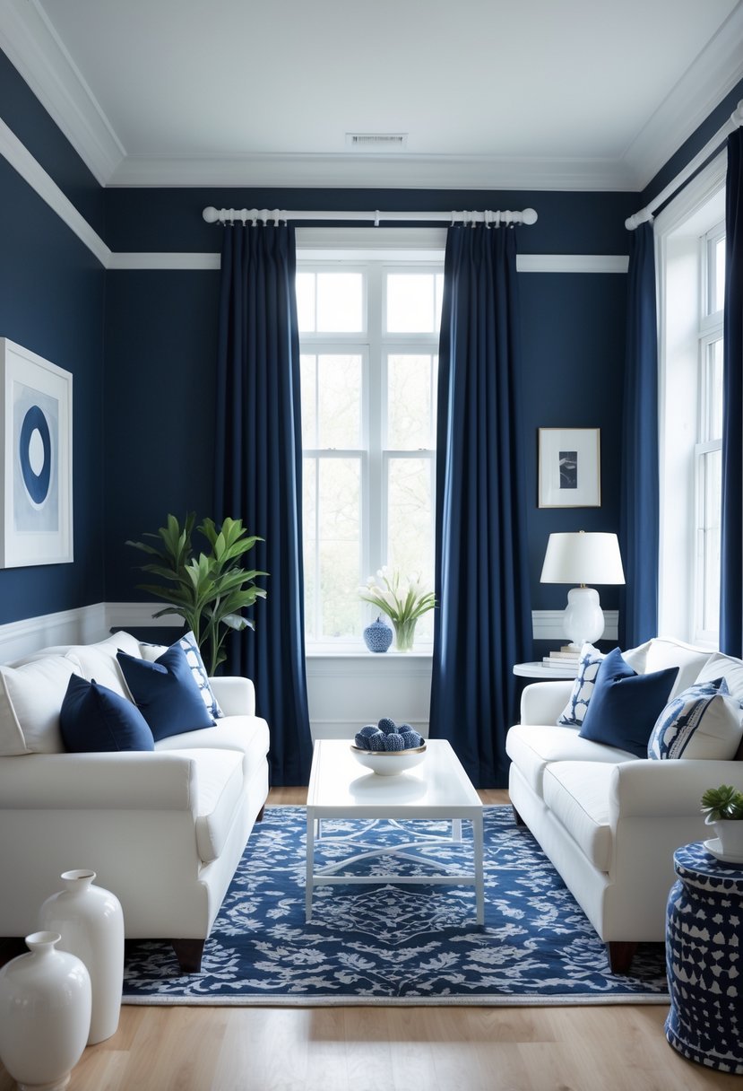 Using navy on walls or built-ins creates a cozy, enveloping atmosphere. I often pair it with white trim or wainscoting to add architectural interest without competing for attention. This pairing works well in both traditional and modern rooms.