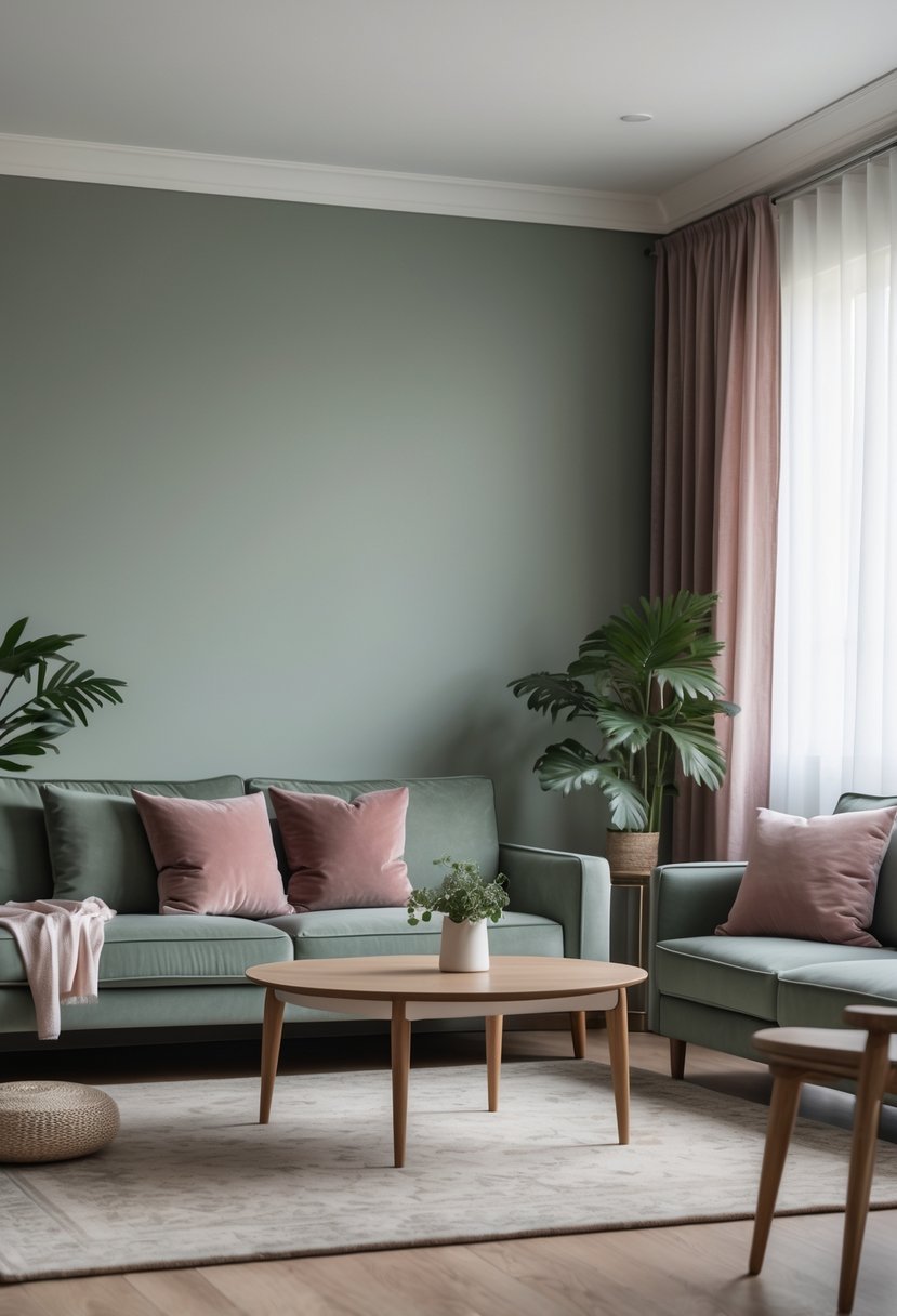 I find muted sage paired with dusty rose creates a balanced, calming palette. The soft green of muted sage complements the warm, gentle tones of dusty rose without overpowering the space.