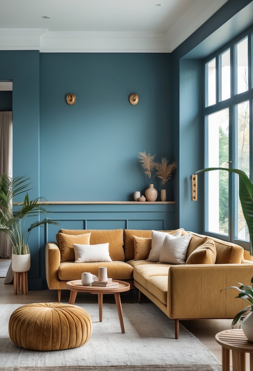 Muted mustard then adds just the right amount of contrast as an accent. I often use it in cushions, throws, or small decor pieces to gently brighten the room while maintaining a sophisticated look.