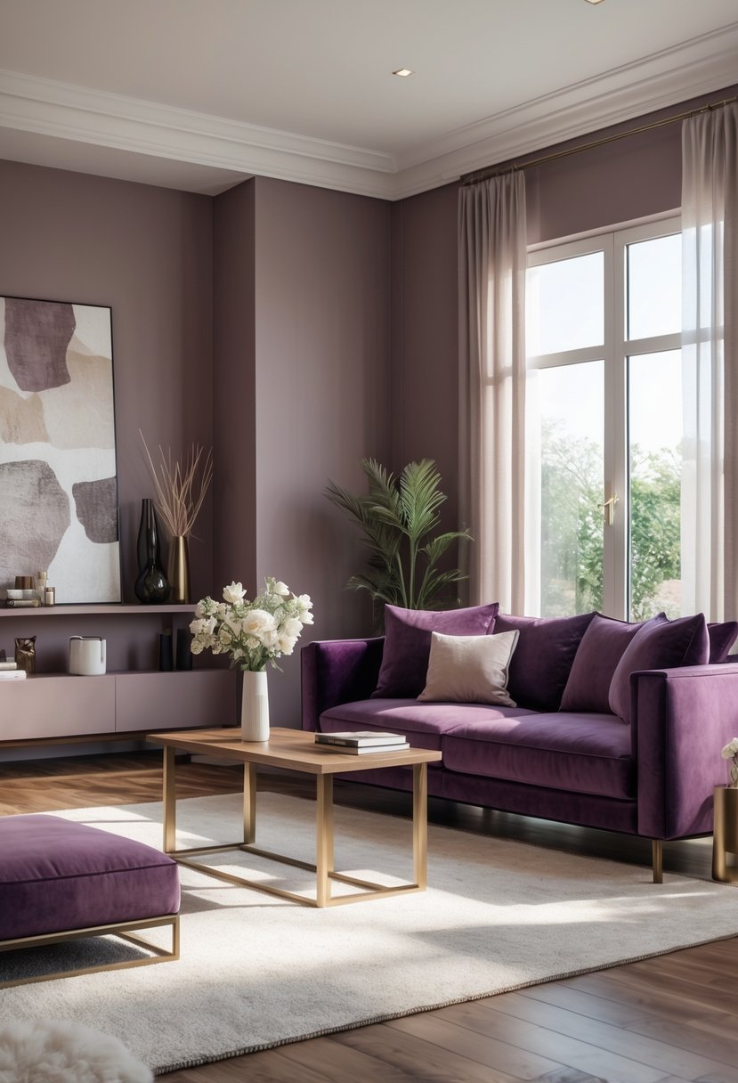 I like combining luxurious plum with light taupe for a balanced interior palette. Plum offers deep, rich tones that add sophistication and warmth.