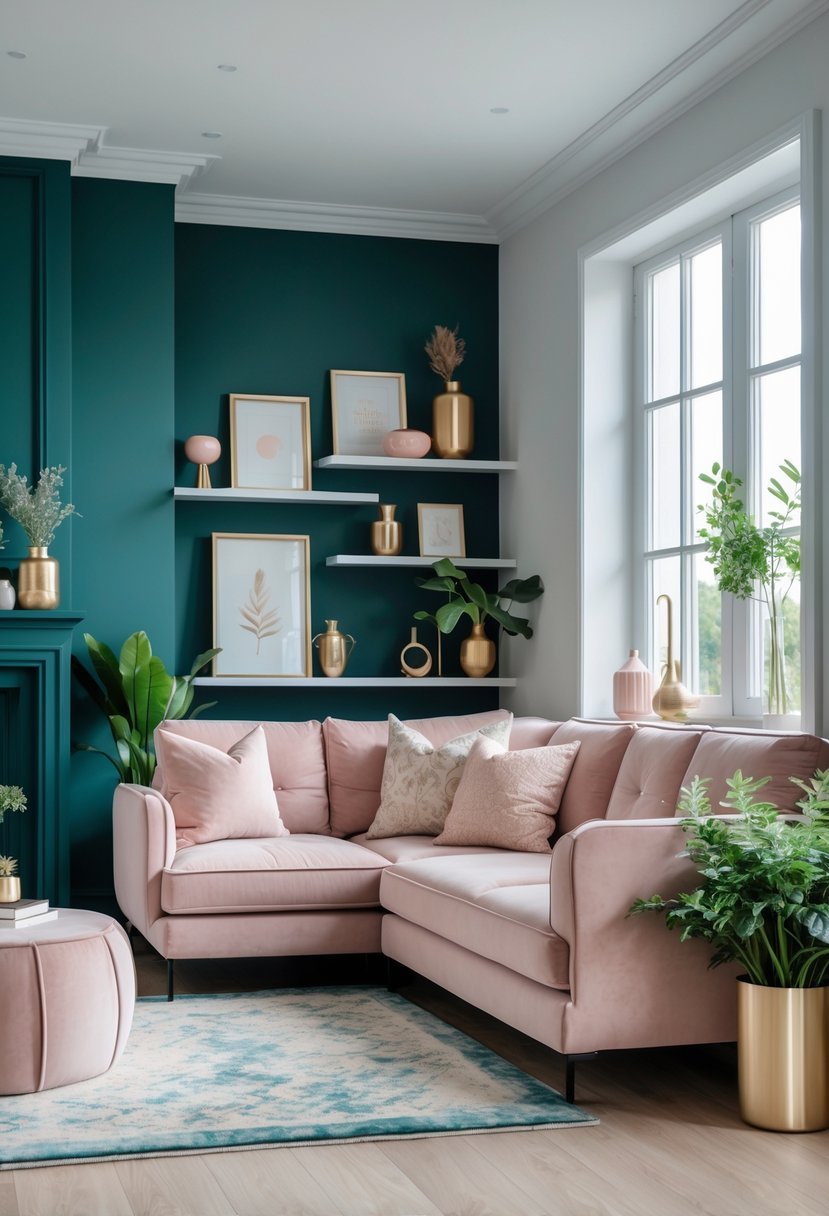 Using these colors together offers contrast without overwhelming the space. Deep teal works well on walls or larger elements, and soft blush accents can soften the overall look. This pairing adapts easily from modern to classic interiors.