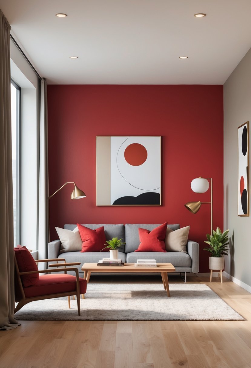 I find that pairing bold red with neutral greige creates a striking balance. The warmth of greige tones softens red’s intensity, making it suitable for living spaces or accent walls.