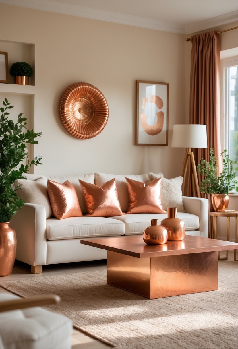 I find that combining rustic copper with soft cream tones creates a balanced and inviting atmosphere. The warm, earthy copper adds depth and character, while the cream provides a clean, neutral backdrop.