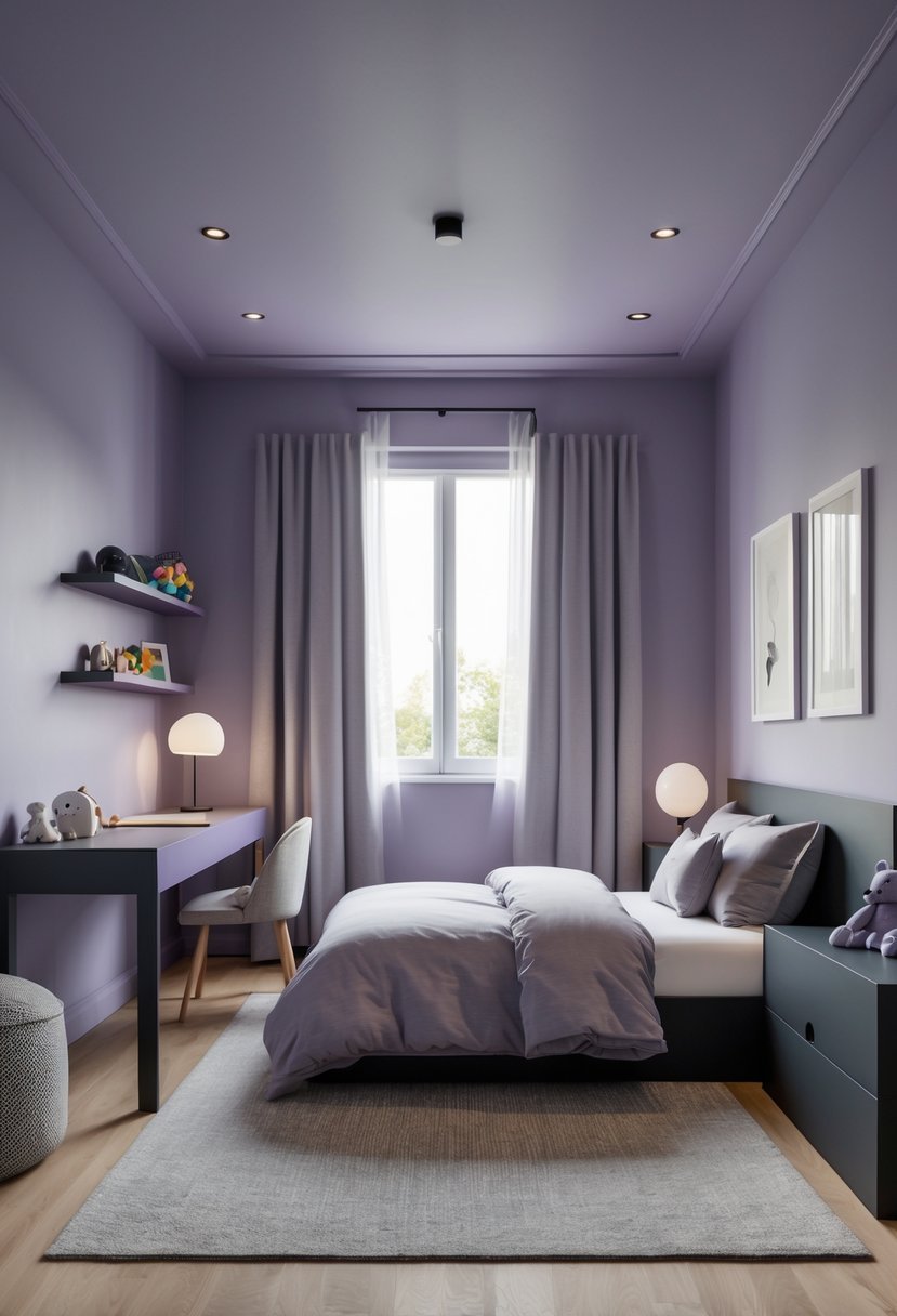 I find muted lavender to be a calm and versatile choice for a boy’s bedroom. It creates a soothing atmosphere that isn’t overly vibrant.