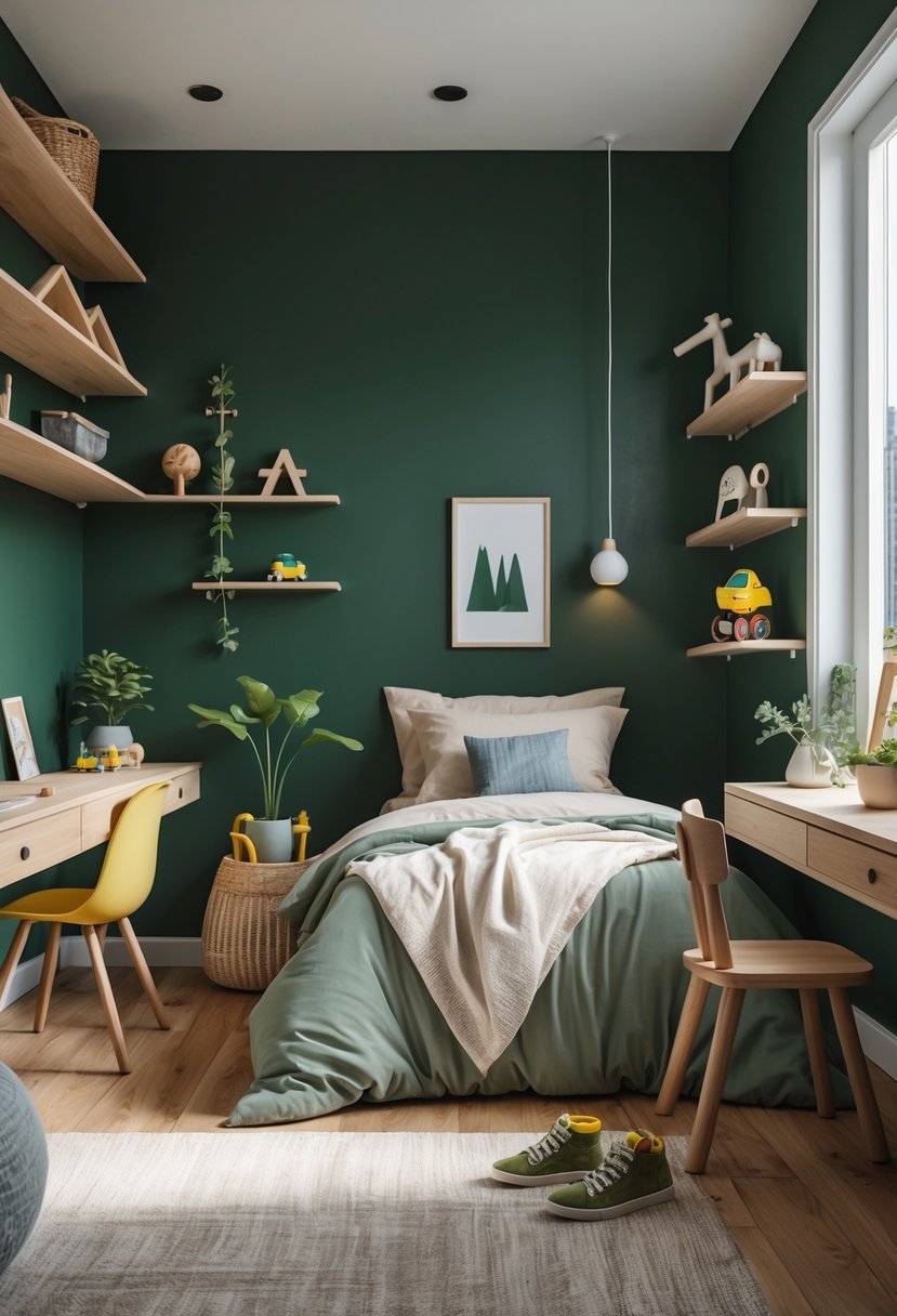 I find deep forest green to be a rich, sophisticated choice for a boy’s bedroom. It adds depth without overwhelming the space. The color creates a cozy atmosphere that feels both natural and timeless.