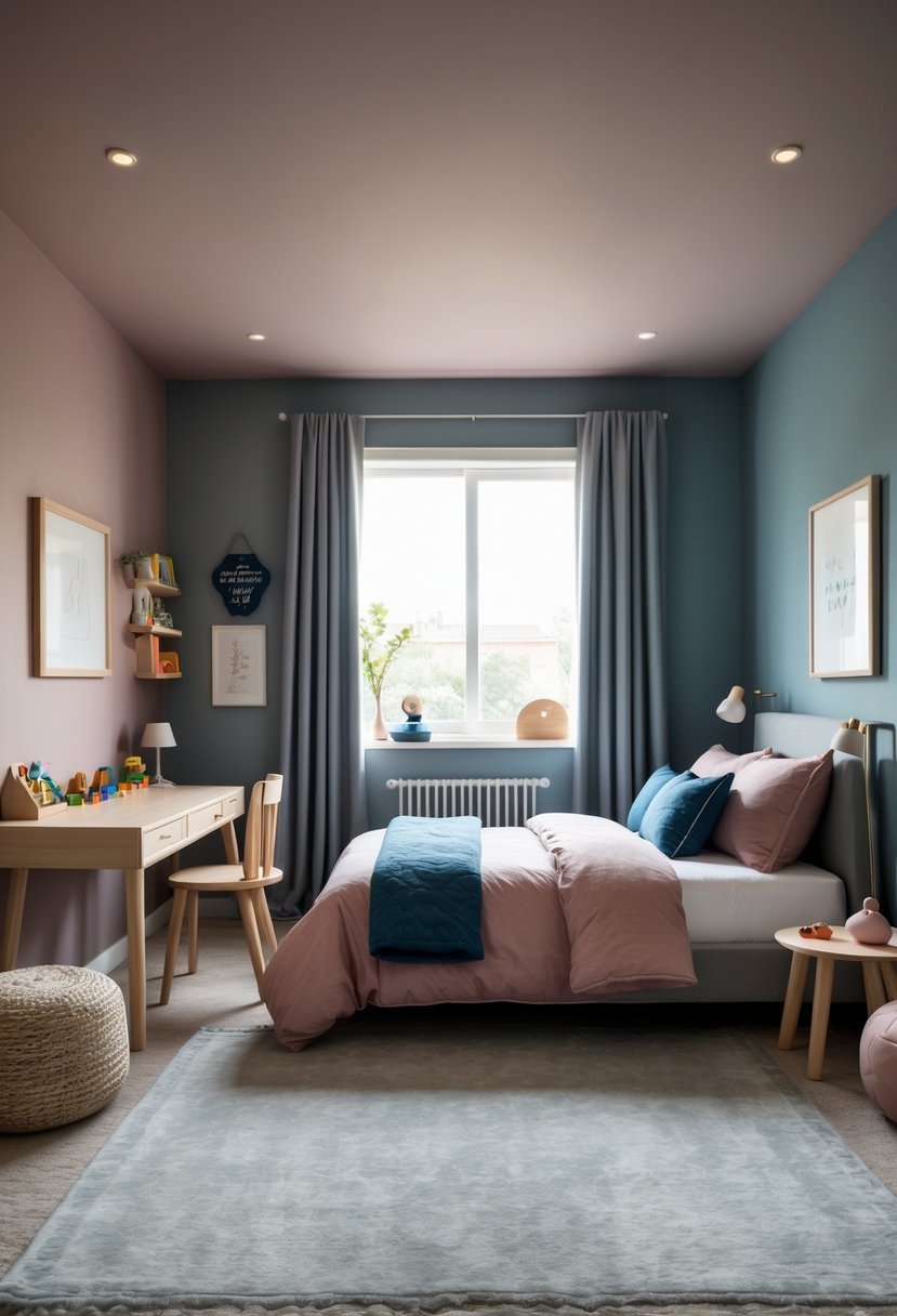 I find that dusty rose paired with steel blue creates a balanced look in a boy’s bedroom. The softness of dusty rose adds warmth without feeling overly feminine. Steel blue, on the other hand, offers a calming, grounding effect.
