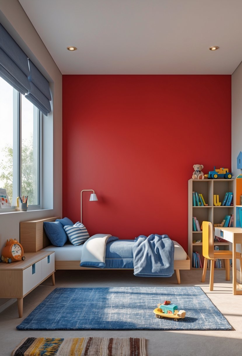 I find a bold red accent wall can energize a boy’s bedroom without overwhelming the space. Painting just one wall in red creates a strong focal point that inspires creativity and confidence.