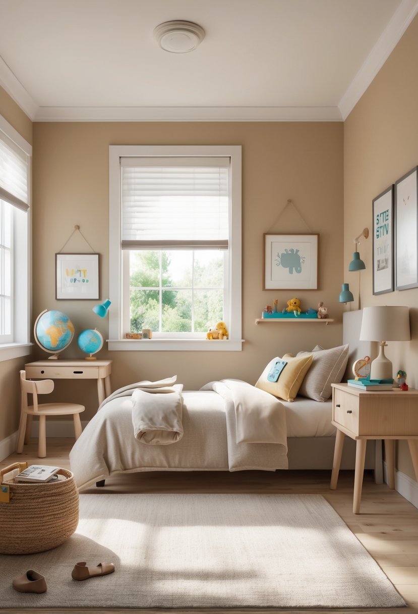 Sandy beige can serve as a soft backdrop, allowing brighter accents or themed decor to stand out. It’s also practical, as it hides dirt well and works with various finishes suitable for kids’ rooms.