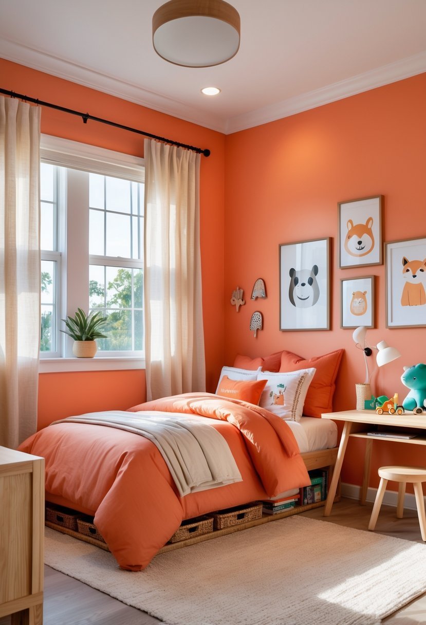 I find Sunset Coral to be a vibrant choice that brings warmth and energy into a boy’s bedroom. It works especially well in rooms designed for creativity or sports themes.