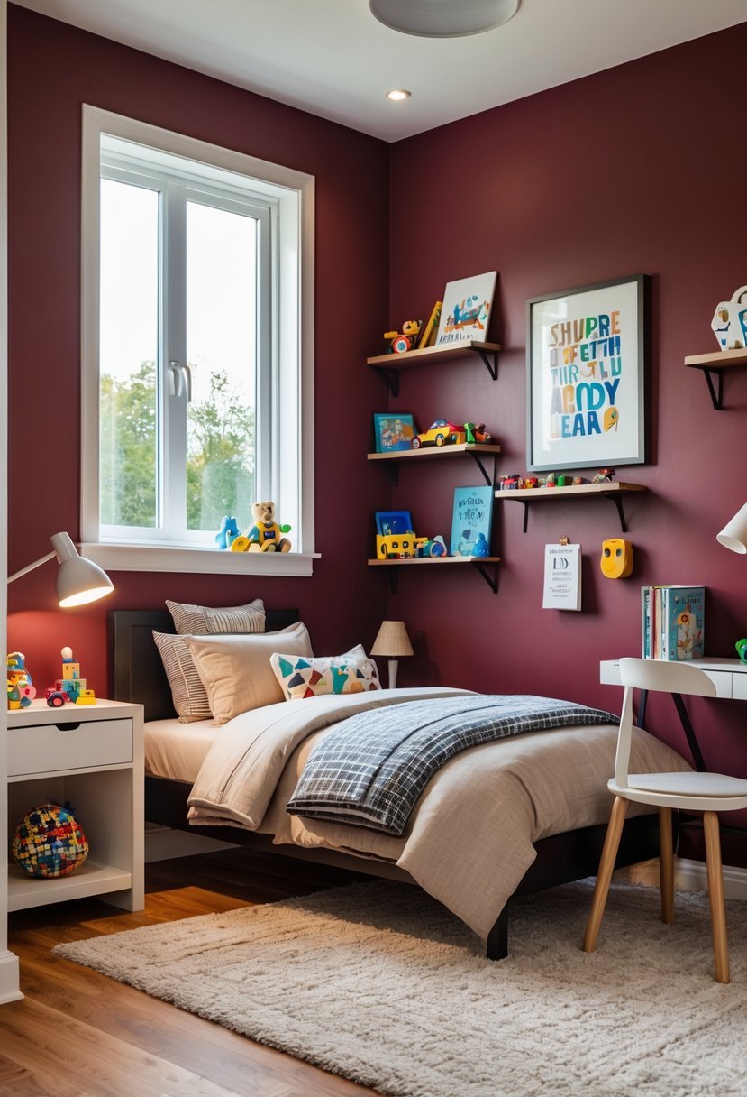 I find rich burgundy a strong choice for a boy’s bedroom. It offers depth and warmth without feeling overpowering.