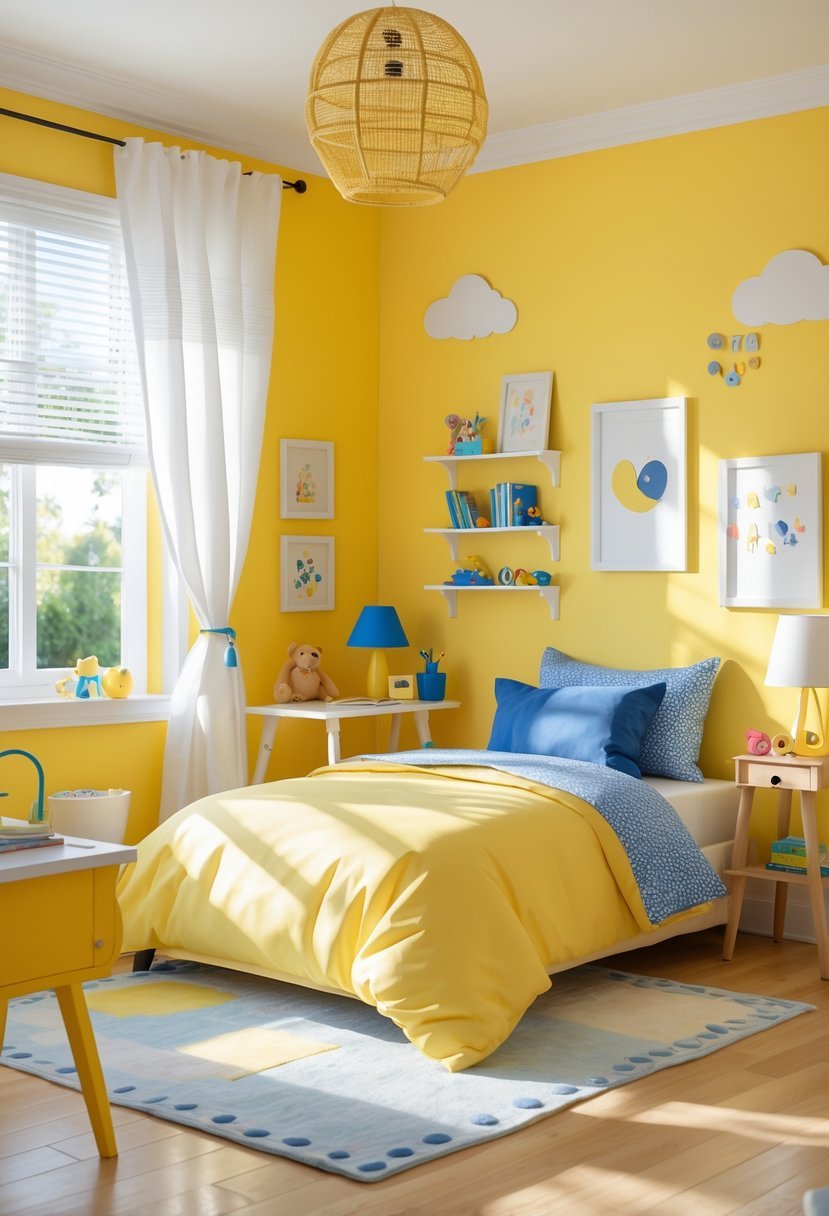 Using creamy yellow also allows for easy accenting with bolder colors like navy or orange for added personality. It’s subtle but effective for a room that grows with your child.