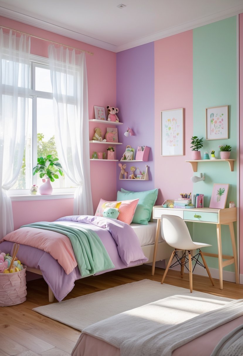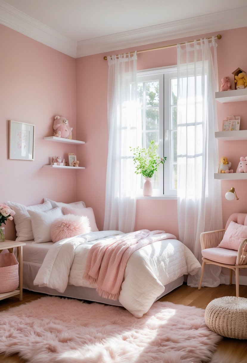 I find blush pink to be a versatile choice for a girl’s bedroom. It creates a soft, calming atmosphere without feeling overwhelming.