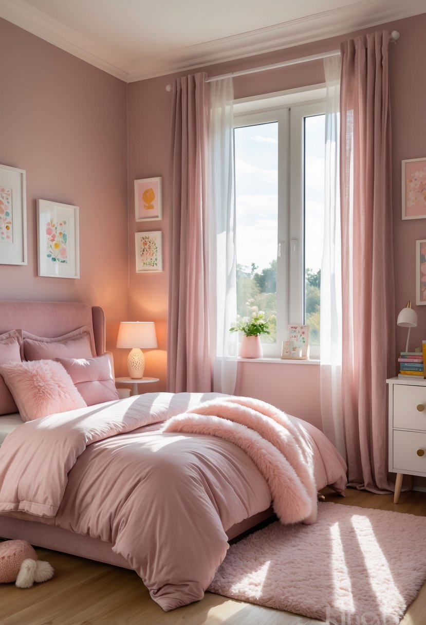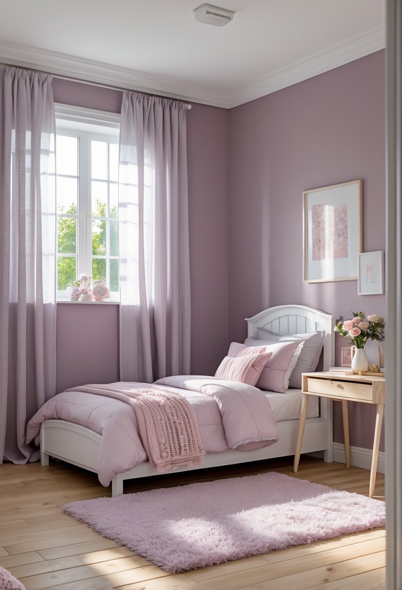 I find light mauve to be a perfect choice for a girl’s bedroom. Its soft, muted tone strikes a balance between warmth and elegance without feeling overwhelming.