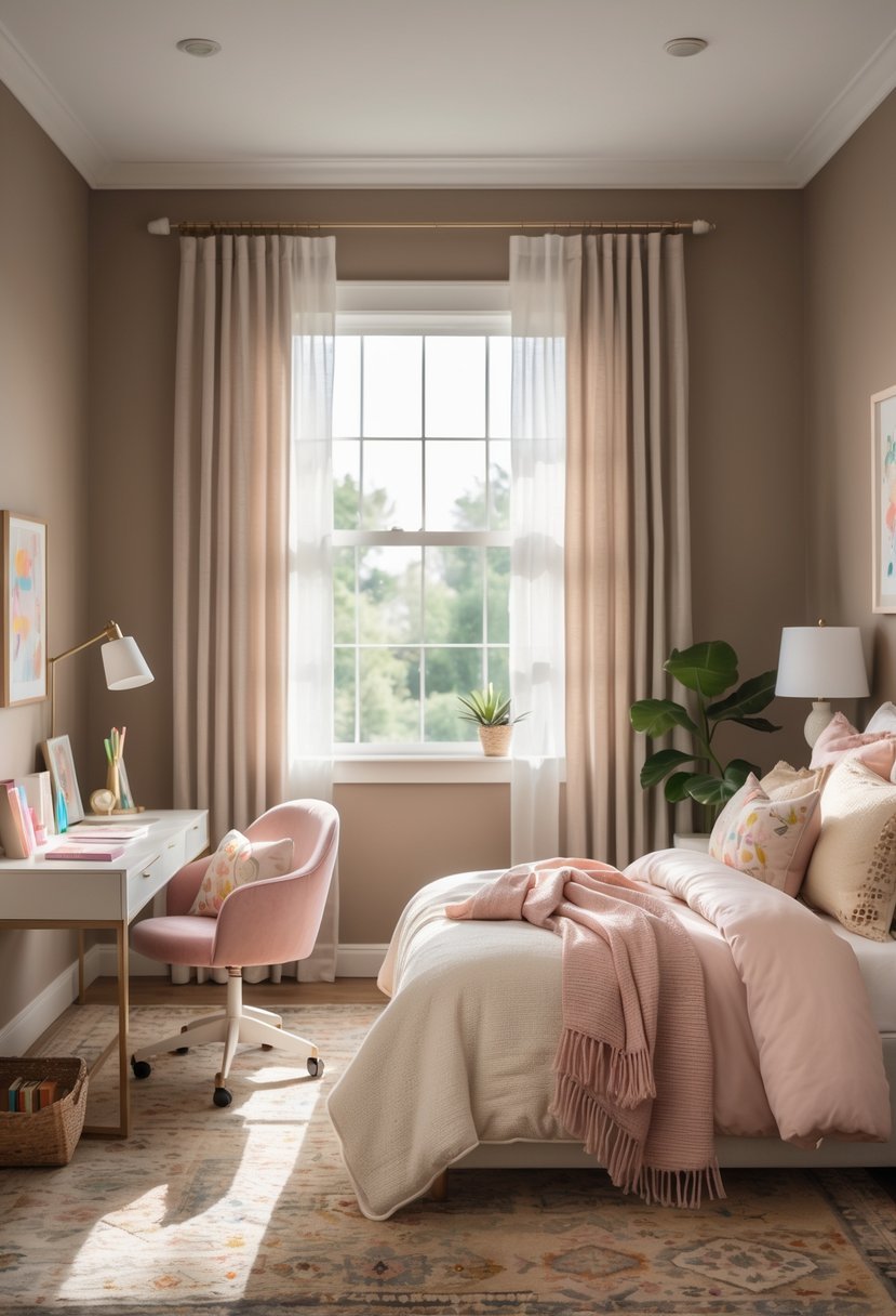 I find warm taupe to be an excellent choice for a girl’s bedroom. It offers a balance between warmth and neutrality, creating a calm and inviting environment.