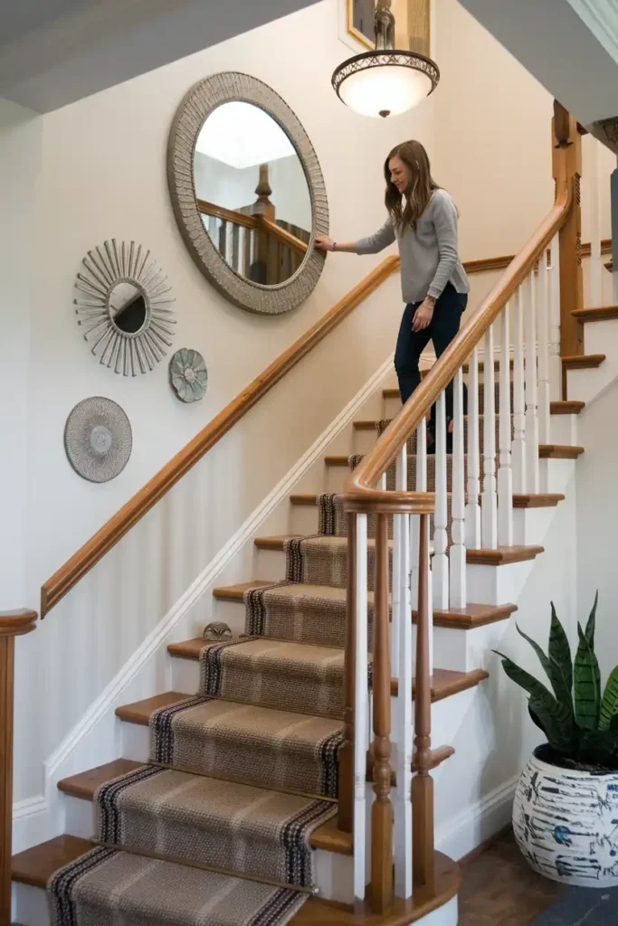 This is a big one. You want your decor to follow the angle of the stairs. This creates a cohesive look that feels connected to the architecture of the space.
