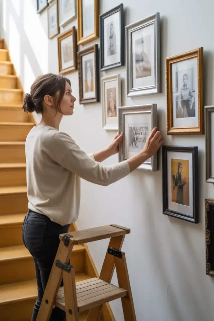 A picture crashing down the stairs is not just a mess to clean up. It is also a safety hazard. I cannot stress this enough. Use secure hooks or adhesive systems designed to hold the weight of your frames.