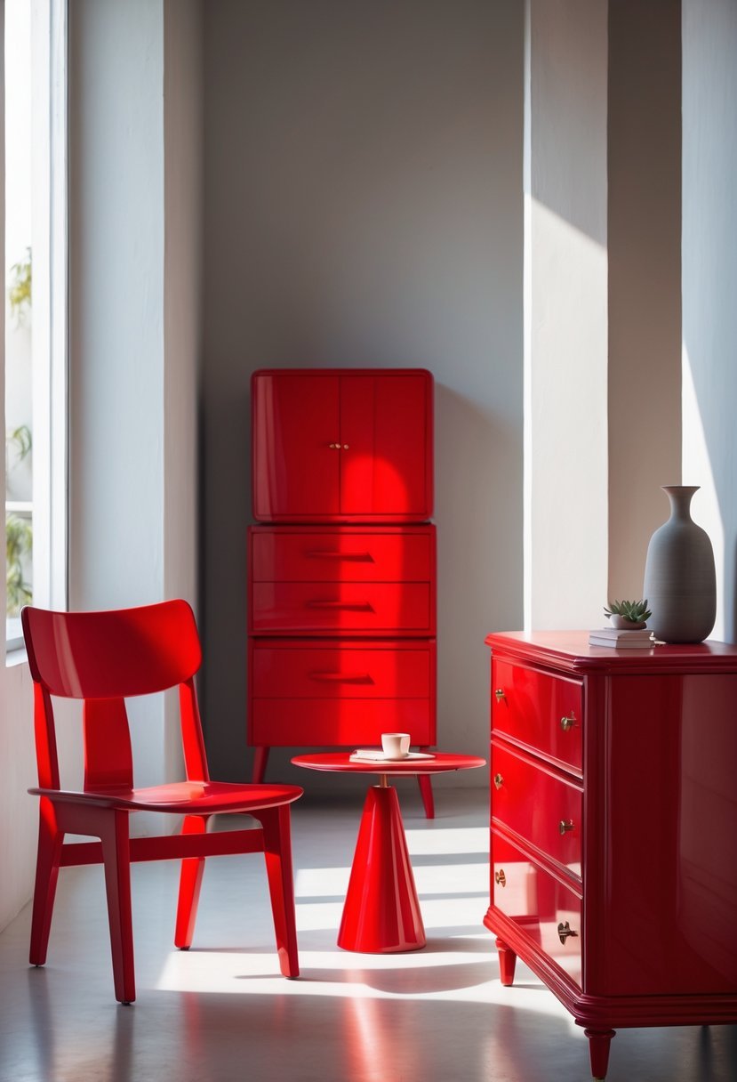Red works well on sofas, chairs, and dressers. It can add energy without overwhelming the space when balanced with neutral tones.