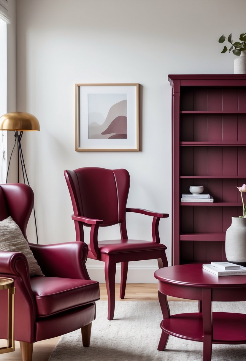 Using burgundy on pieces like cabinets or chairs adds sophistication and a timeless feel. It pairs well with neutrals and natural wood finishes.