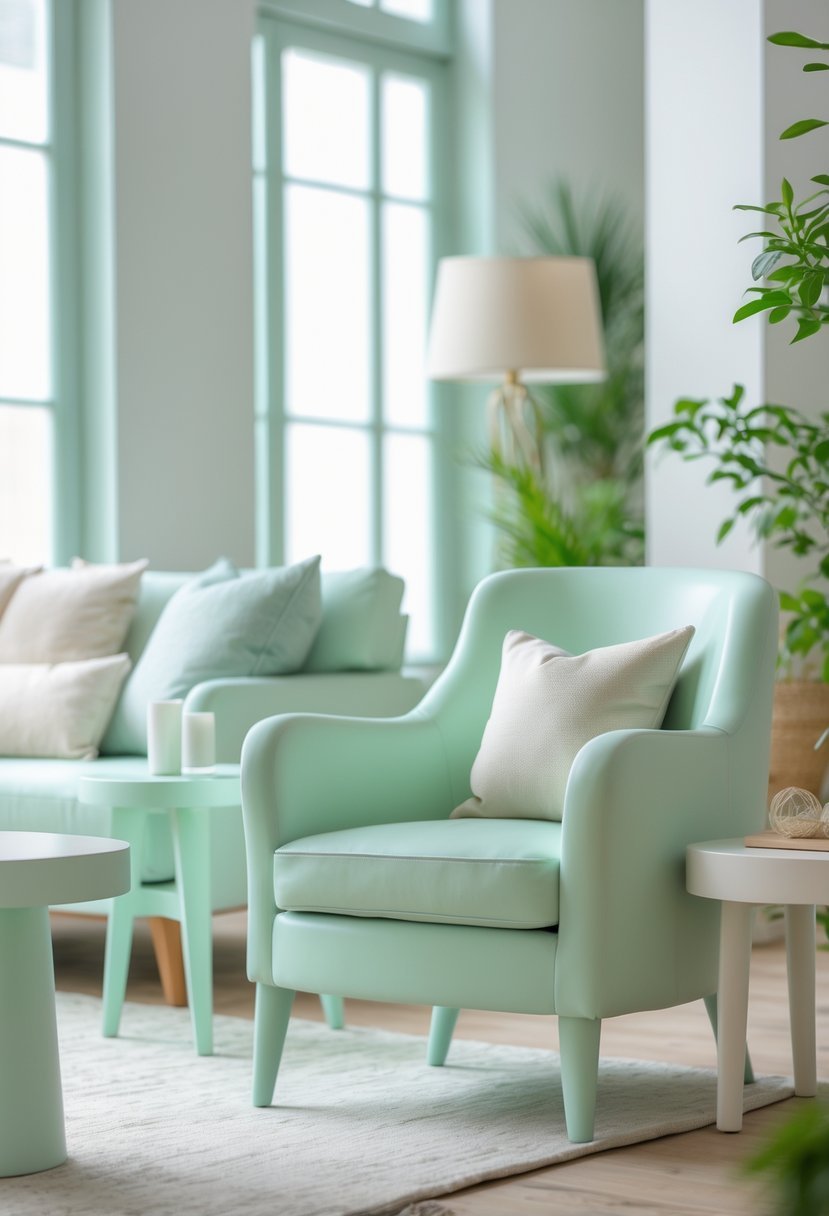 I find pale mint to be a versatile choice for furniture. Its soft green tone with subtle hints of blue brings a calm, fresh vibe without overwhelming the space.