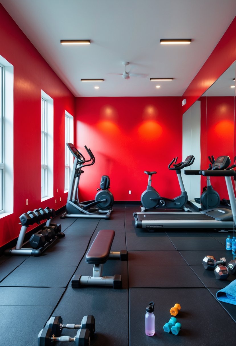 This color brings a psychological boost that can push me to work harder through tough reps. I find red works best on an accent wall or in small doses, as it’s bold and invigorating without overwhelming the space.