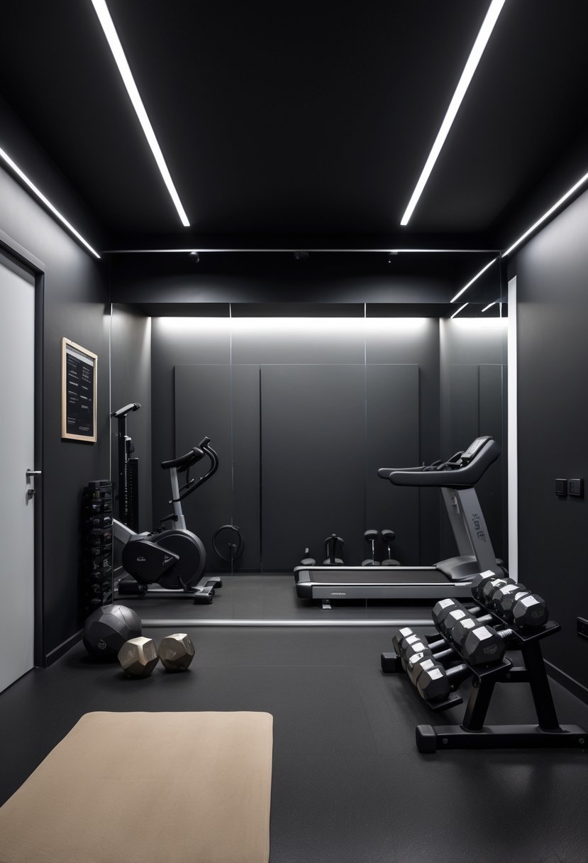 I find bold black creates a striking, focused environment in a home gym. It adds depth and seriousness, making the space feel intentional and strong.