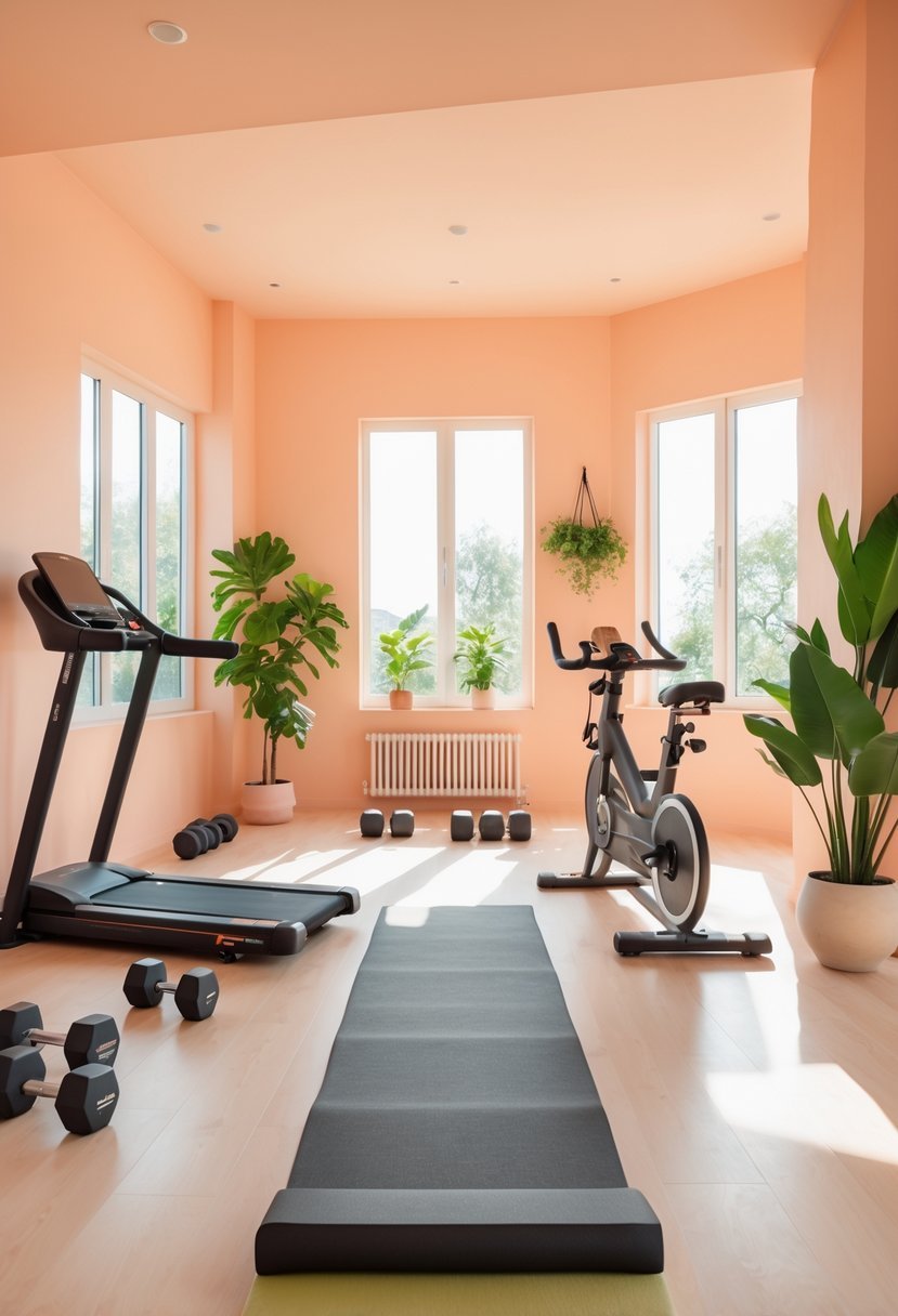 Peach tones encourage calmness, which helps me stay focused during workouts. At the same time, they add a soft energy that feels inviting and refreshing, perfect for maintaining motivation in a personal exercise space.