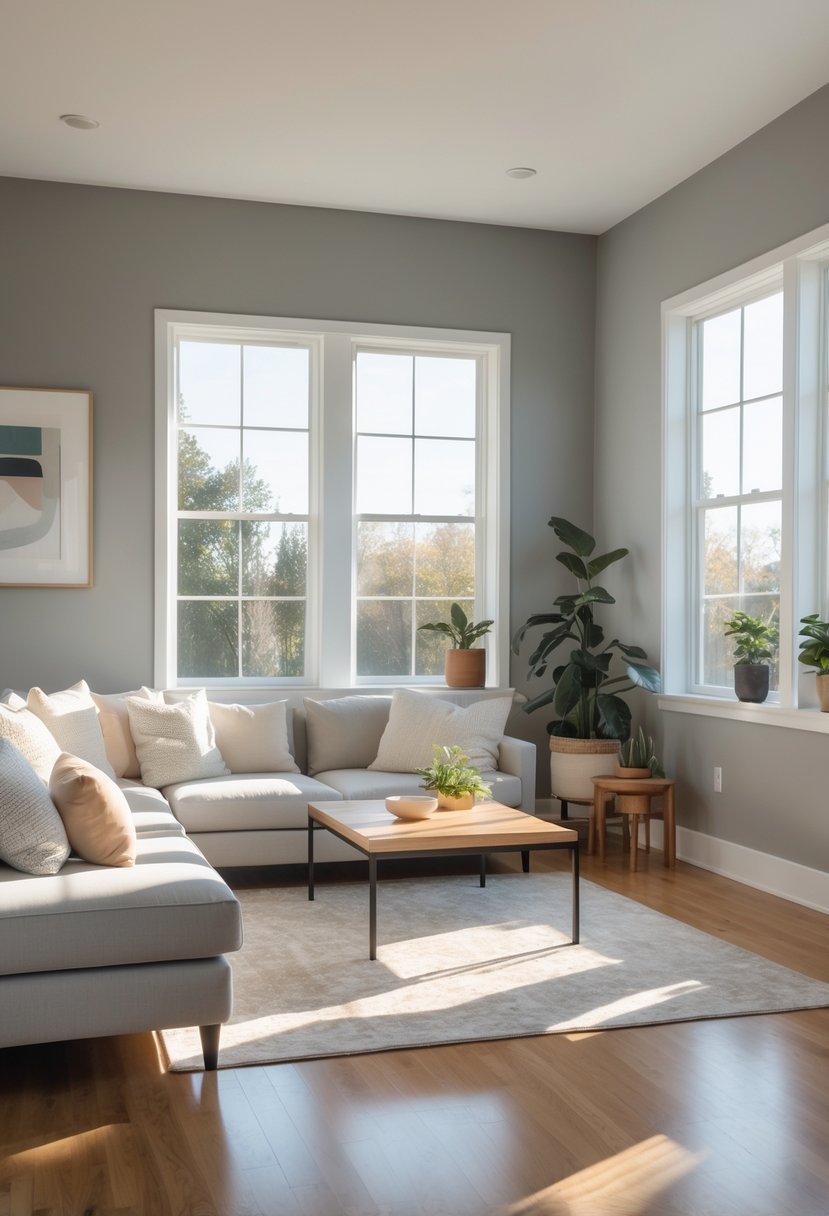 I find Sherwin Williams Agreeable Gray to be an excellent choice for west-facing rooms. Its blend of gray and beige creates a warm, neutral tone that shifts with the afternoon light, softening into a cozy taupe-gray.