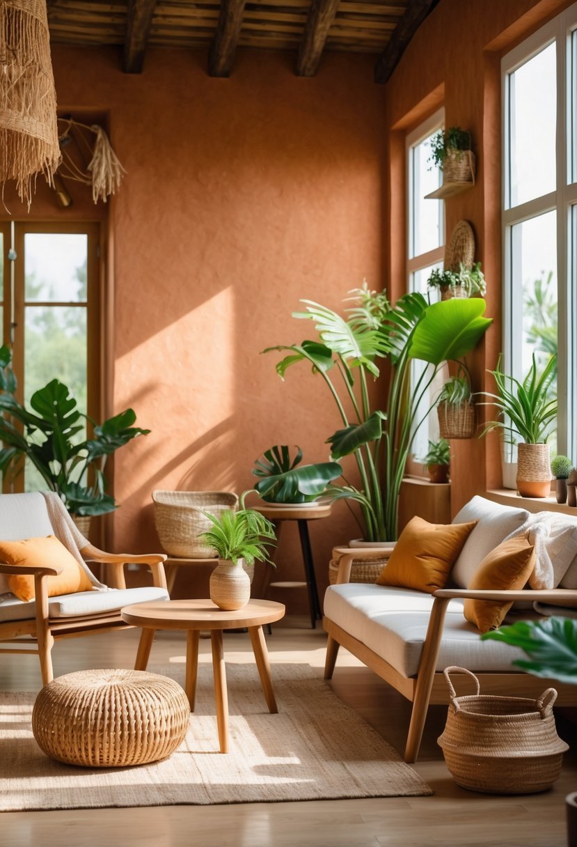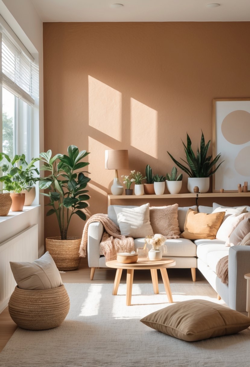 I find earthy clay tones bring a grounded and warm atmosphere to any space. These colors, inspired by natural clay and terracotta, blend well with greens and off-whites, creating a balanced, calm environment.