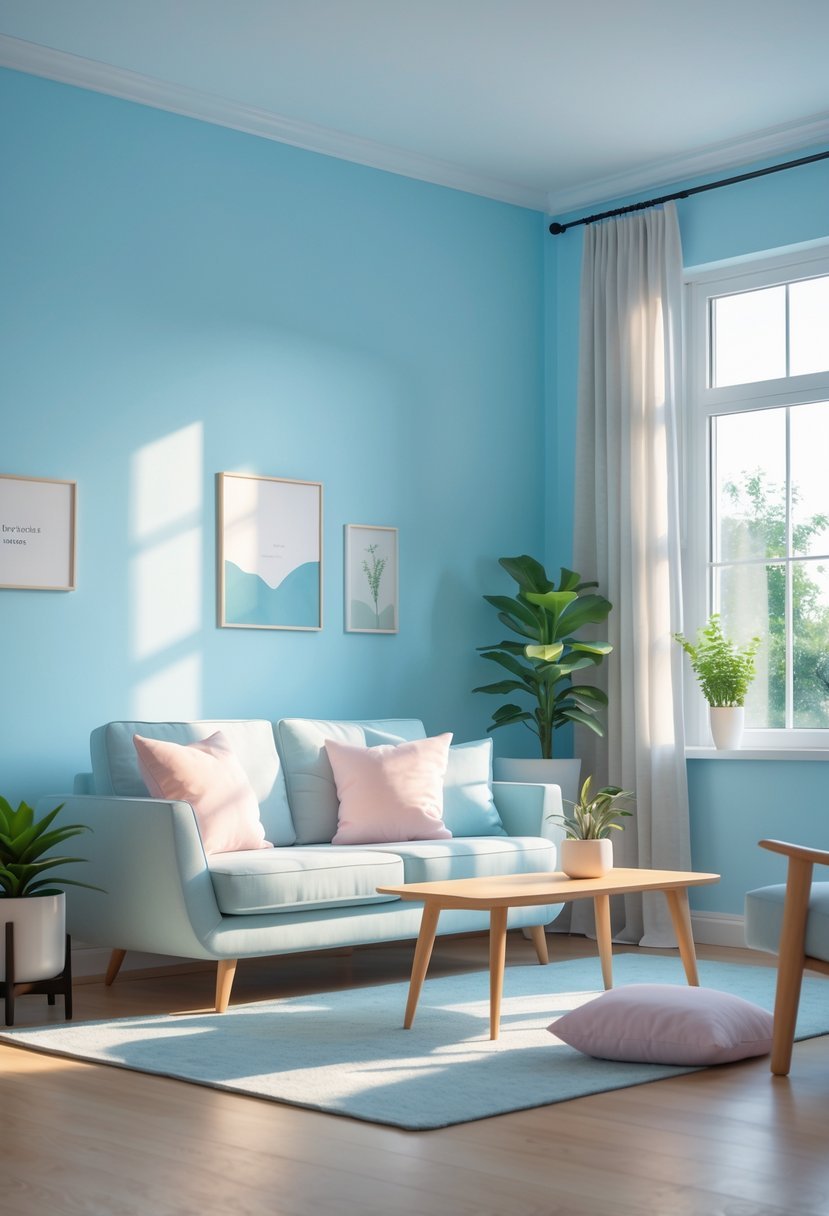 Using soft sky blue in a room can make the space feel more open and airy. I’ve seen how it brightens areas while maintaining a peaceful backdrop. It pairs well with neutrals and subtle whites, adding freshness without overwhelming.