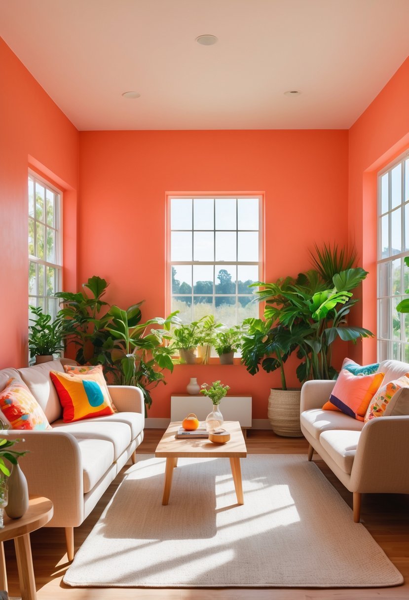 I find Sun-Kissed Coral to be a warm and inviting color that adds subtle energy to any room. It balances the brightness of orange with a gentle pink undertone, making it perfect for spaces where I want a cheerful but not overwhelming atmosphere.